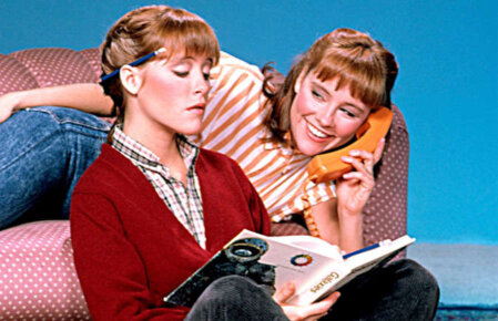 Corded wall phones were considered the height of cool, firmly anchored in kitchens and hallways as essential household fixtures. Here, the stars of the US sitcom Double Trouble capture the spirit of 80s teen life as they chat and gossip on a classic landline phone.