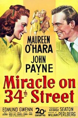 Miracle on 34th Street (initially released as The Big Heart in the United Kingdom)[3][4] is a 1947 American Christmas comedy-drama film released by 20th Century-Fox, written and directed by George Seaton and based on a story by Valentine Davies. It stars Maureen O'Hara, John Payne, Natalie Wood, and Edmund Gwenn. The story takes place between Thanksgiving and Christmas in New York City, and focuses on the effect of a department store Santa Claus who claims to be the real Santa. The film has become a perennial Christmas favorite.